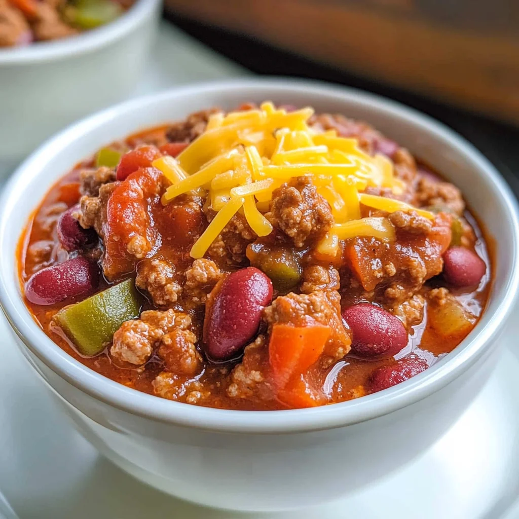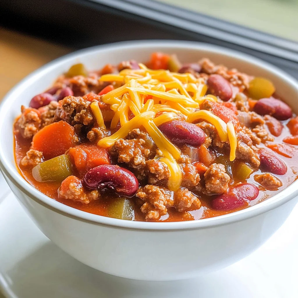Serve your chili hot topped with shredded cheddar cheese if desired. Enjoy this hearty dish that brings comfort on chilly nights!